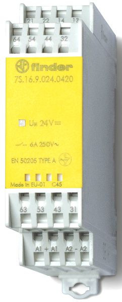 | Kurzbeschreibung | Relaismodul mit zwangsgeführten Kontakten, 4 Schließer + 2 Öffner für 6 A, Anschlussspannung 230 V AC |