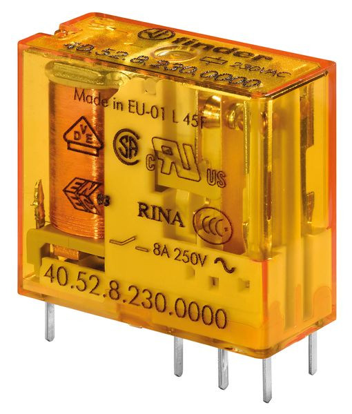 Steck-/Printrelais 2 Wechsler (AgNi) für 8 A / 250 V AC, Kontaktpinraster: 5.0 mm Spulendaten 230 V AC, 1.2 VA, 28000 Ohm, Relaisschutzart: RT II