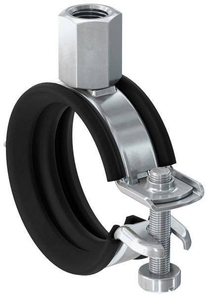 Die fischer Gelenkrohrschelle FGRS Universal ist eine Rohrschelle mit einer Schraube aus galvanisch verzinktem Stahl der Werkstoffgüte DD11 mit Kombi-Anschlussgewinde M8 / M10 oder Gewinde M8. Der Schnellverschluss und das Kombi-Anschlussgewinde ermöglichen eine einfache und zeitsparende Montage.Das Einrasten des Schnellverschlusses garantiert die sichere Justage des Rohres ohne ein Aufspringen der Schelle. Damit können Rohrleitungen mit einem Außendurchmesser von 12-66 mm mit Gewindestange oder Stockschraube sicher im Innenbereich befestigt werden. Die Rohrschelle entspricht mit einer chlor- und silikonfreien Schalldämmeinlage den Anforderungen der DIN 4109.