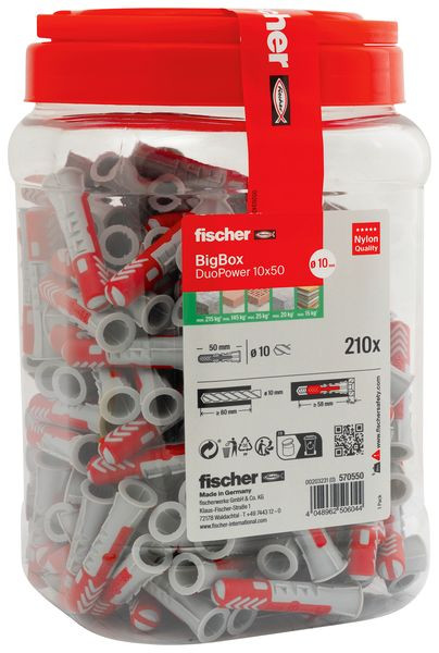 Der fischer DuoPower ist ein intelligenter 2-Komponenten-Dübel mit drei Funktionsprinzipien. Der intelligente Universaldübel ist für Befestigungen in allen Baustoffen geeignet. Dies ermöglicht vielfältige Anwendungen mit nur einem Dübel. Der fischer DuoPower passt sich selbstständig dem Baustoff an und leitet durch die drei Funktionsprinzipien klappen, spreizen und knoten höchste Lastwerte ein. Die sehr gute Rückmeldung des Dübels beim Eindrehen der Schraube schafft ein zusätzliches Plus an Sicherheit. Die fischer DuoPower 6 x 50, 8 x 65 und 10 x 80 sind durch die größere Verankerungstiefe besonders geeignet für Befestigungen in Lochbaustoffen, Porenbeton und zur Putzüberbrückung.