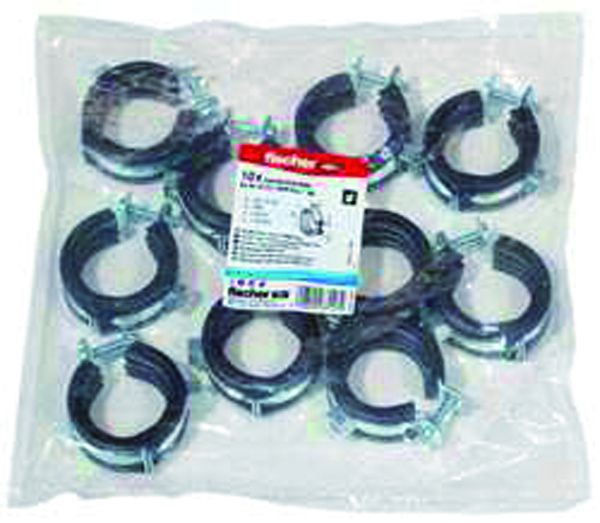 Die fischer Gelenkrohrschelle FGRS Plus ist eine Rohrschelle mit einer Schraube aus galvanisch verzinktem Stahl der Werkstoffgüte DD11 mit Kombi-Anschlussgewinde M 8 / M 10. Der Schnellverschluss und das Kombi-Anschlussgewinde ermöglichen eine einfache und zeitsparende Montage. Das Einrasten des Sicherheitsverschlusses garantiert die sichere Justage des Rohres ohne ein Aufspringen der Schelle. Damit können Rohrleitungen mit einem Außendurchmesser von 12 - 63 mm mit Gewindestange oder Stockschraube sicher im Innenbereich befestigt werden. Die Rohrschelle entspricht mit einer chlor- und silikonfreien Schalldämmeinlage den Anforderungen der DIN 4109.