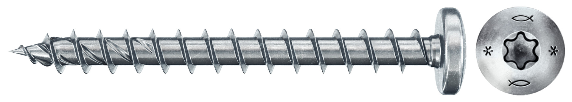 Die fischer PowerFast FPF II PTF BC ist eine galvanisch verzinkte, blau passivierte Schraube mit Vollgewinde und Innenstern-Aufnahme. Mit dem Halbrundkopf eignet sie sich für Verbindungen von Metall auf Holz, beispielsweise bei der Befestigung von Metallbeschlägen, Winkeln oder Balkenschuhen. Das durchgängige Gewinde über die gesamte Schraubenlänge sorgt für eine optimale Kraftübertragung.