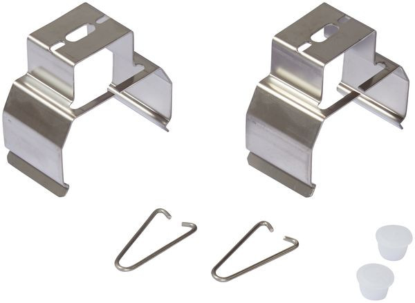 Befestigungssatz für EURO-FFL. Der Befestigungssatz enthält: 2 Halteklammern aus Edelstahl zum Aufklipsen, 2 Ketten-/Seil-Abhänger und 2 Verschlußstopfen.