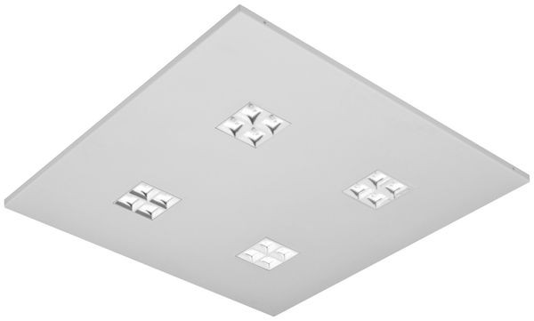 LED Einlegeleuchte. Gehäuse aus weißem Stahlblech. Zurückversetzte Linsenoptik für eine besonders gute Entblendung. Für den Einbau in modulare Deckensysteme mit sichtbarer Tragschiene (Modul 625) und daher bevorzugter Einsatzbereich in Büro- und Geschäftsräumen. Blendungsbewertung für Bildschirm- und Büroarbeitsplätze.