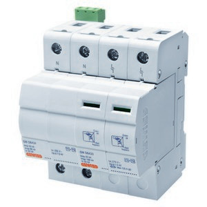 | Kurzbeschreibung | Ueberspannungsableiter mit tauschbarem Modul+Kontakt Typ 1+2 230V 25kA 1P+N 4TE |