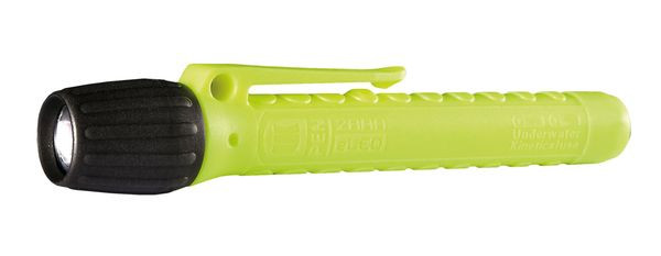 EX-Taschenlampe UNDERWATER KINETICS 2AAA eLED PEN IZone 1, 21 Gehäuse: ABS und Polycarbonat, safety-gelbAbmessungen: 132 x 24 x 22mmGewicht inkl. Batterien: ca. 53 gBatterie: 2xAAALeuchtmittel: LED weißLeuchtdauer: ca. 3hLichtstrom: ca. 35lmLeuchtweite: ca. 60m Druckschalter am am LeuchtenendeLieferung inkl. Batterien Optionales Zubehör:294184 BEAMGUIGE - Lichtleiteraufsatz