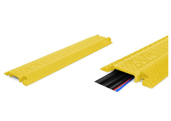 GIFAS Kabelbrücke EASY100Technische Daten:Material: Polyurethan, gelbMaße (LxBxH): 1005 x 250 x 40 mmKanäle: 1Kanalbreite: 100 mmKanalhöhe: 30 mmGewicht: 4,2 kgMaximale Belastung: ca. 0,5 t (20x20cm)Brandschutzklasse: B2 (nach DIN4102)Arbeitsbereich: -30° C bis +60° CHärtebereich: 88 Shore +-4 Shore Eigenschaften:- mit Verbindungszapfen - Öl-und benzinbeständig, kurzfristiger Kontakt mit Lösungsmitteln - Innen- und Aussenbereich- rutschfeste 3D-Lasergrip Struktur