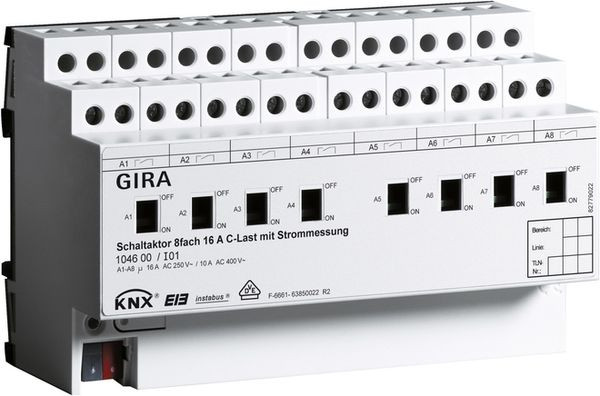 | Kurzbeschreibung | Schaltaktor 8f 16 A Hand + Strom C-Last KNX REG |
