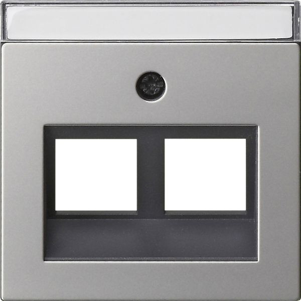 Abdeckung mit 30°-Schrägauslass und Beschriftungsfeld für Tragring Modular Jack 2fach Edelstahl