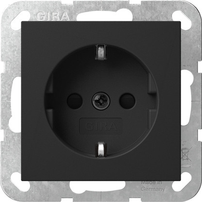 SCHUKO-Steckdose 16 A 250 V~ mit erhöhtem Berührungsschutz (Safety Plus), ohne Befestigungskrallen Schwarz matt (lackiert) Schraubklemmen