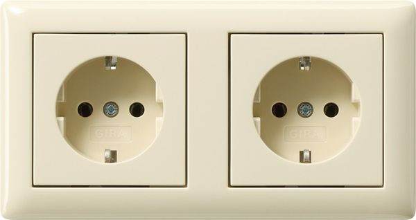 SCHUKO-Steckdose 2fach 16 A 250 V~ vorverdrahtet, komplett mit Abdeckrahmen Cremeweiß glänzend Standard 55