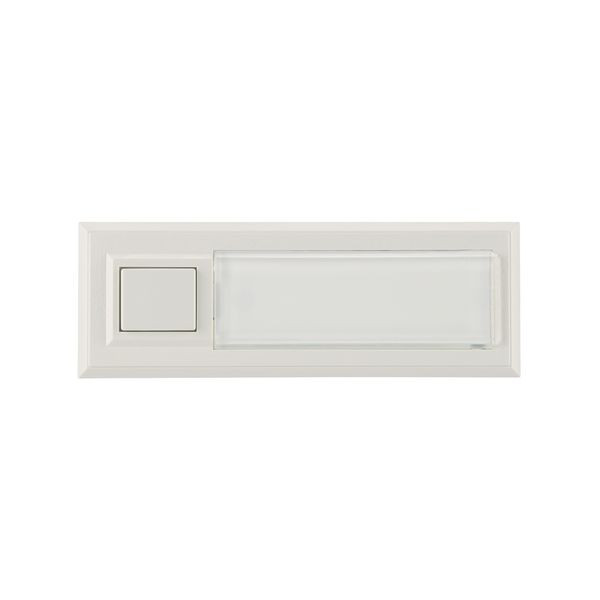 Aufputz-Montage, weiß, beleuchtbar, zweiteilig, mit durchgehendem Hauptleiter für Signal- und Lichtanschluß, mit Soffitten 17 V/0,1 A, anreihbar, diese Etagenplatte ist zu jeder gewünschten Stückzahl kombinierbar, witterungsbeständig