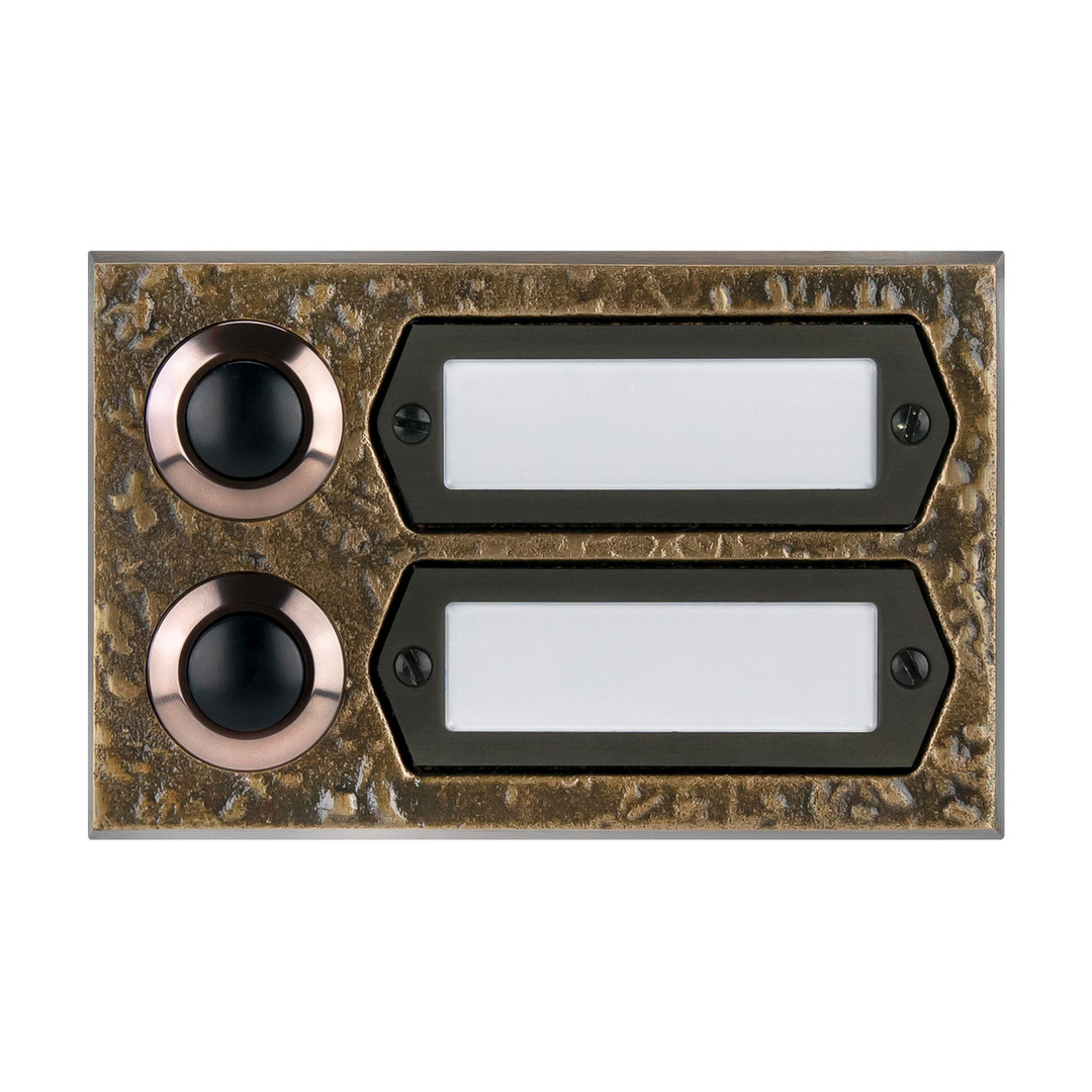 Einreihig, mit strukturiert-brünierter Oberfläche. Die Messingrähmchen der Namenschilder sind eingelassen.