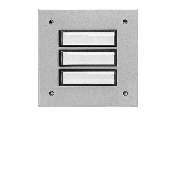 Aluminium, silber eloxiert, Unterputz-Montage, beleuchtbar, Anzahl Flächentaster siehe Bestellübersicht, incl. 1 Licht-Schild (rot), witterungsbeständig, Befestigungsbohrungen: jeweils 16 mm von Außenkante