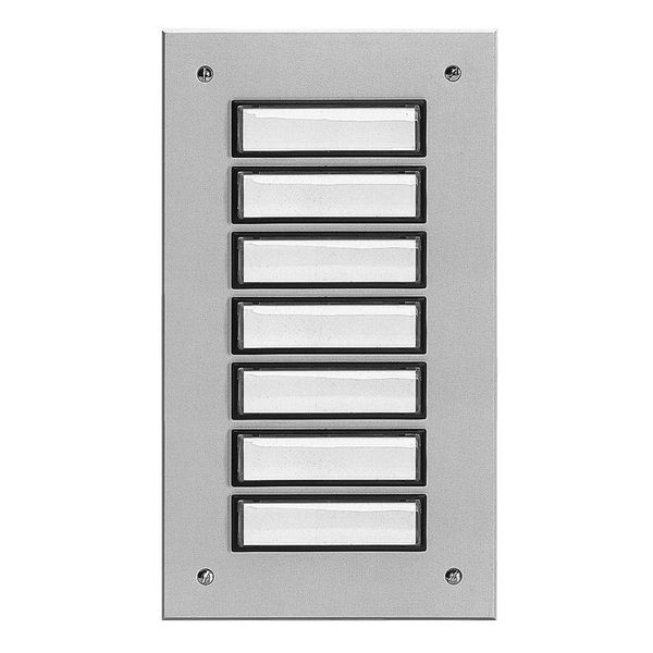 Aluminium, silber eloxiert, Unterputz-Montage, beleuchtbar, Anzahl Flächentaster siehe Bestellübersicht, incl. 1 Licht-Schild (rot), witterungsbeständig, Befestigungsbohrungen: jeweils 16 mm von Außenkante