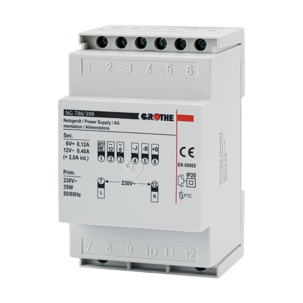 Das Netzgerät wird auf einer Hutschiene montiert und besitzt eine Breite von drei Teileinheiten (54 mm).