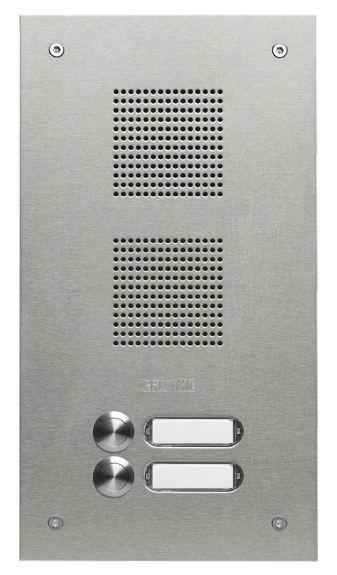 Die Serie ROBUSTA ist ausgestattet mit Eigenentwicklungen aus unserem Hause, wie z. B. den Tastern der Serie PROTACT oder dem LED-Namensschild. Bei diesem Artikel handelt es sich um eine bündig abschließende Unterputz-, Audio-Türstation mit insgesamt zwei Klingeltastern und zwei Namensschildern. Der PROTACT Klingeltaster mit seiner taktilen Rückmeldung gibt Ihnen ein angenehmes Gefühl beim Betätigen und das Namensschild rundet visuell nochmals mit seiner LED-Beleuchtung die Front ab. Die 2,5 mm dicke Frontplatte ist aus Edelstahl (gebürstet), was der Türstation einen edlen Look verschafft. Neben dem verzinktem Unterputzkasten und den diebstahlsicheren Befestigungsschrauben, besitzt die ROBUSTA einen integrierten Lautsprecheradapter und bietet Ihnen zusätzlich so die Möglichkeit einen GROTHE Lautsprecher einzubauen. Der patentierte Lautsprecheradapter bieten mit den getrennten Kammern sowie dem Wasserableitsystem eine optimale Akustik und den besten Schutz gegen Witterungseinflüsse.