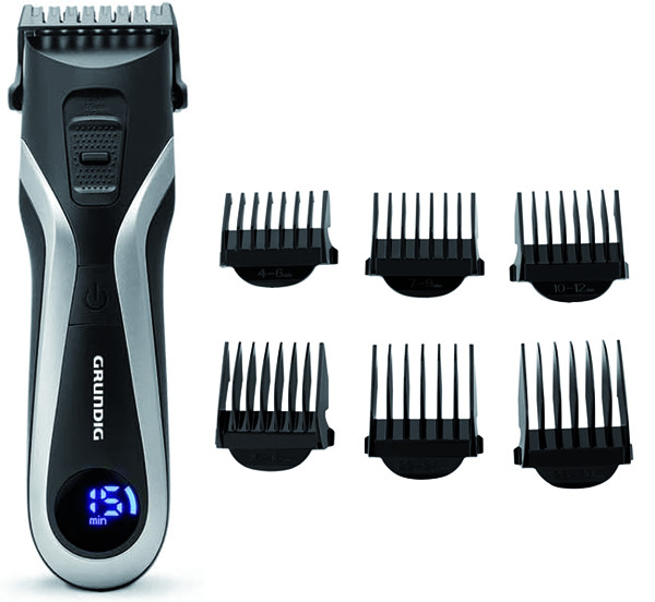 hochwertiger und wartungsfreier Edelstahlschneidsatz, Schnittbreite 40 mm, 6 Profi-Aufsteckkämme, Schnittlänge 0,5 mm (ohne Kammaufsatz) bis 30 mm, Schneidsatz hygienisch abwaschbar, Akku-Kapazität 60 Min., Ladezeit: 90 Min., LED-Display mit Ladekontrollanzeige, automatische Spannungsumschaltung, 3 Jahre Garantie