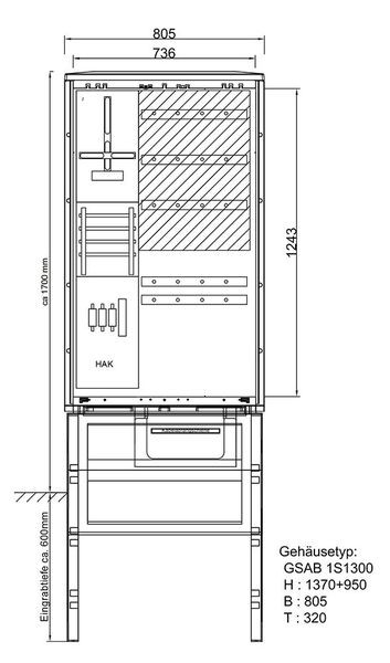 | Kurzbeschreibung | Festplatzverteiler mit VNB_Teil, Sammelschienensystem vorbereitet zum Einbau von Systemleisten. Sockel mit Festplatzeinführung |