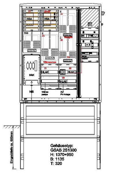 | Kurzbeschreibung | Zähleranschlusssäule (3Zähler/TSG) PV-Wärmepumpe-E-Mobilität |