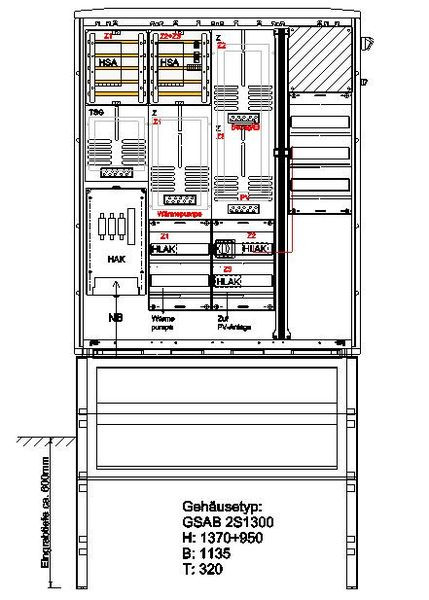 | Kurzbeschreibung | Zähleranschlusssäule (3Zähler/TSG) PV-Wärmepumpe, E-Mobilität vorbereitet |