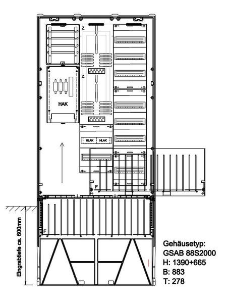 | Kurzbeschreibung | Zähleranschlusssäule Bayernwerk (2Zähler ohne TSG inkl. HAK) mit Verteiler 8x12TE |