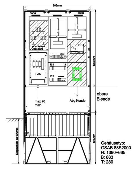 | Unterer Anschlussraum | mit Sammelschiene 4-polig |