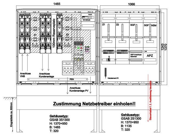 Wandlermessung Mitnetz 630A Überschusseinsp. Mit NA-Schutz bis 300kVA inkl. Sockel