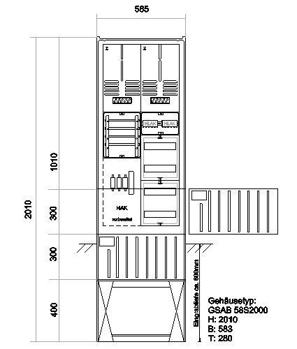 | Kurzbeschreibung | Zähleranschlusssäule EDIS (2Zähler/ohne TSG) Geh.A mit Verteiler 5x12 TE |