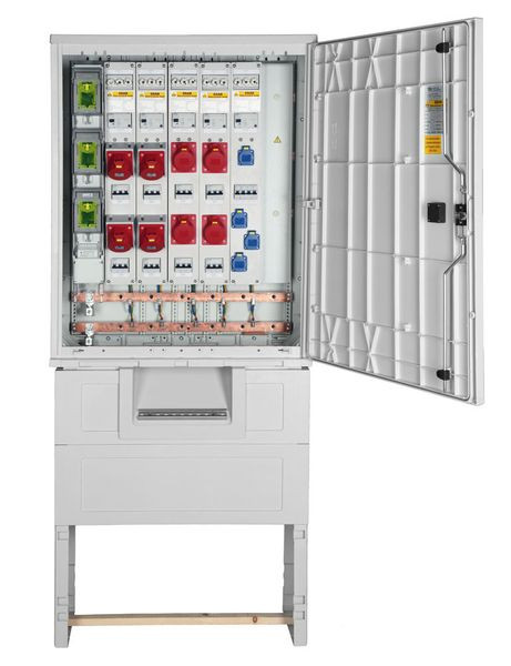 | Kurzbeschreibung | Festplatzverteiler HxBxT:1000x805x320 mit Sammelsch. 400A, 5-pol,LSL2Sys-2x32+2x16+Schuko |