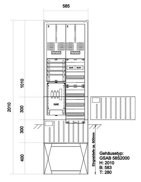 | Kurzbeschreibung | Zähleranschlusssäule Westnetz (2Zähler/ohne TSG) Geh.A mit Verteiler 5x12 TE |