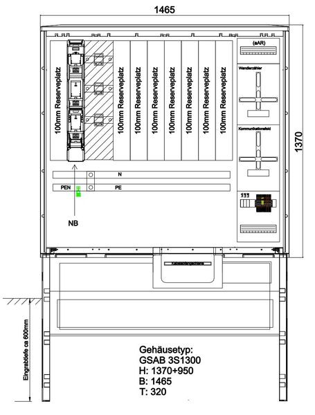 | Unterer Anschlussraum | mit Sammelschiene 4-polig |