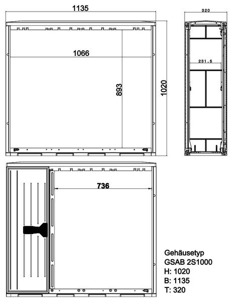 | Kurzbeschreibung | Kabelverteilerschrank HxBxT:1020x1135x320 1/3-Tür und 2/3-Tür Einfachschwenkhebel |