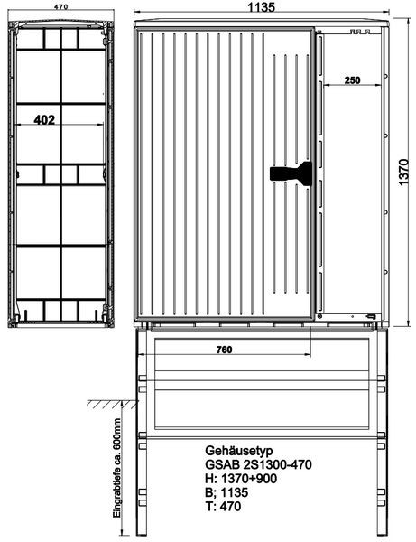 | Kurzbeschreibung | Verteilerschrank HxBxT:1300x1135x470 2/3-Tür Doppelschl. 1/3-Tür Einfachschwenkhebel |