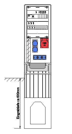 Festplatzverteiler mit Sockel HxBxT:1420x320x234mm best.mit CEE16,2xCE16,3xSchuko inkl.FP-Einführung