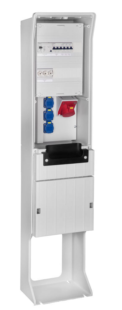 Festplatzverteiler mit Sockel HxBxT:1420x320x234mm best.mit CEE16,3xSchuko inkl. FP-Einführung