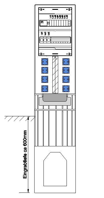 | Kurzbeschreibung | Festplatzverteiler mit Sockel HxBxT:1420x320x234mm best.mit 8xSchuko inkl. FP-Einführung |