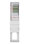 Verteilersäule mit Sockel HxBxT:1420x320x234, mit Sammelsch. 4xNH00 Lastschaltleiste 100mm. Technische Details: Gehäuse aus SMC (glasfaserverstärktes Polyester); Schutzart IP44; Abmessungen: H: 1410 mm, B: 320 mm, T: 230 mm.