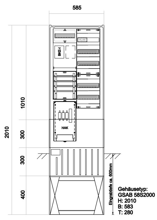 | Kurzbeschreibung | Zähleranschlusssäule LEW 1EHZ-Zählerplatz + 1xReserveplatz EHZ mit Verteiler 5x13TE |