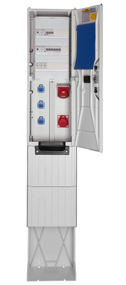 | Kurzbeschreibung | Festplatzverteiler mit Sockel HxBxT 2010x350x280mm mit CEE32,CEE16,3xSchuko inkl. FP-Einführung |
