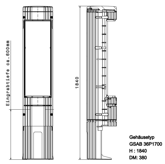 | Kurzbeschreibung | GSAB-Poller mit Sockel, Höhe 1811mm, Durchmesser 360mm, Montageplatte, Doppelschwenkhebel |