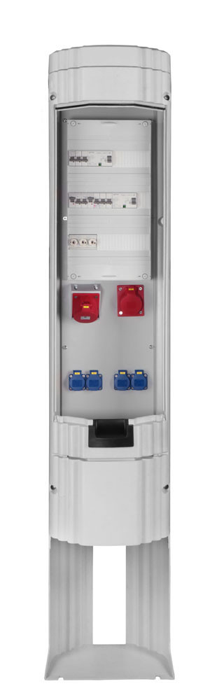 GSAB-Poller mit Sockel, Höhe 1811mm, Durchmesser 360mm, CEE32, 16, 4xSchuko, Festplatzeinführung