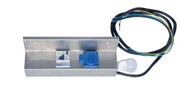 | Kurzbeschreibung | Beleuchtungsbaugruppe,V2A,Türkontaktschalter, FI-Schalter m. Steckdose für Normschränke |