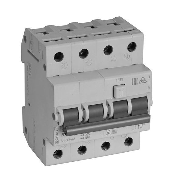 FI/LS-Kombination (Fehlerstrom-Schutzschalter und Leitungsschutzschalter) B16 3-polig+N 30mA. Bemessungsstrom 16 A, Bemessungsfehlerstrom 30 mA, Bemessungsspannung 400 V AC. Auslösecharakteristik B, Fehlerstrom-Typ A. 3 abgesicherte Pole, 4-polig schaltend. Frequenz 50 Hz. Montage auf DIN-Schiene. Schutzart IP20. Bietet Personen- und Sachschutz sowie Schutz vor elektrisch gezündeten Bränden gemäß DIN VDE 0100-410. nach IEC/EN 61009-1.