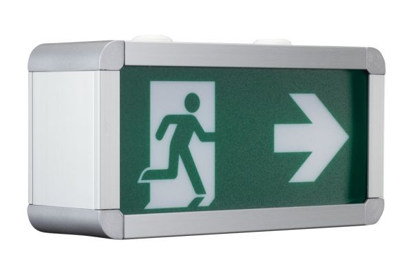 Zeitlose Rettungszeichenleuchte, hergestellt aus erstklassigen, recyclingfähigen Aluminium-Strangpressprofilen. Silberne Gehäusefarbe durch aufwendige und hochwertige Eloxierung, die abgerundeten Ecken setzen ein optisches Highlight. Standardmäßig in IP43 erhältlich, auf Wunsch zu IP54 aufrüstbar.