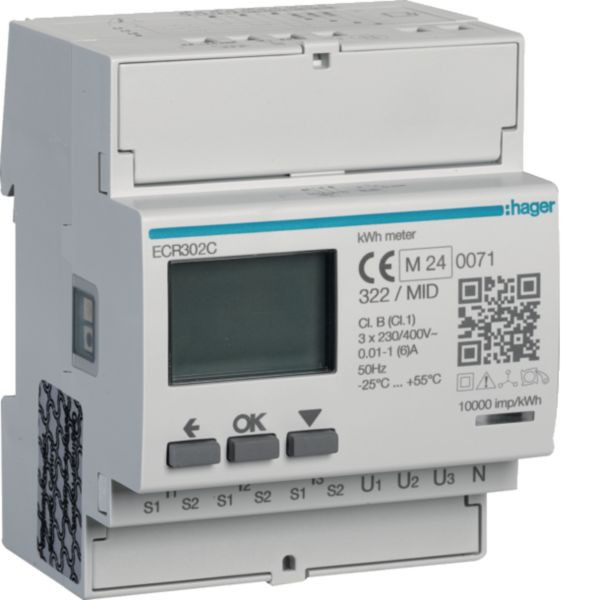 Energiezähler 3phasig für Wandlerverhältnis 1A oder 5A, 4M, MODBUS, MID