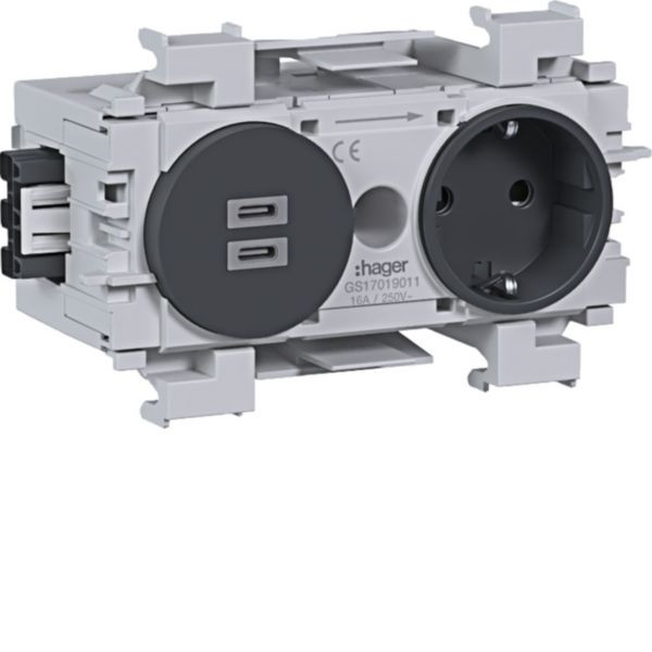 Steckdose 1-fach mit USB-Charger C + C PD 20W Winsta Frontrastend graphitschwarz