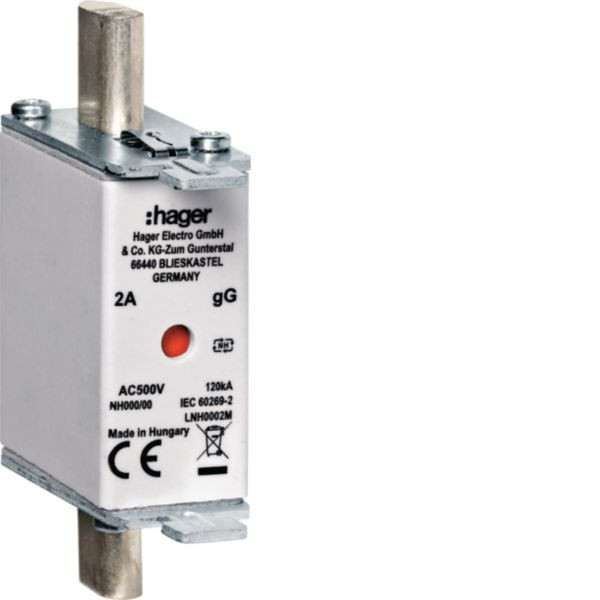 NH-Sicherungseinsatz NH000 2A gG AC500V Kombimelder Lasche spannungsführend