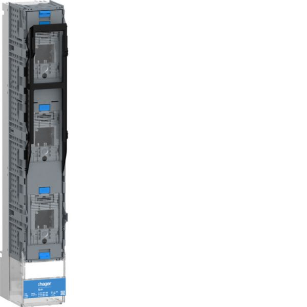 NH2-Sicherungslastschaltleiste 3polig V-Bett m. Klemmen kurze Abdeckung rostfrei