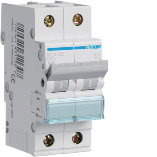 | Kurzbeschreibung | LS-Schalter 2 polig 6kA C-3A 2M |